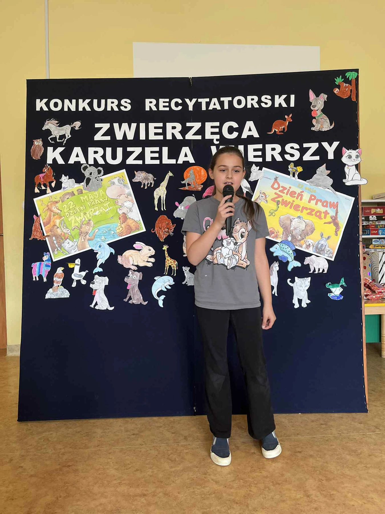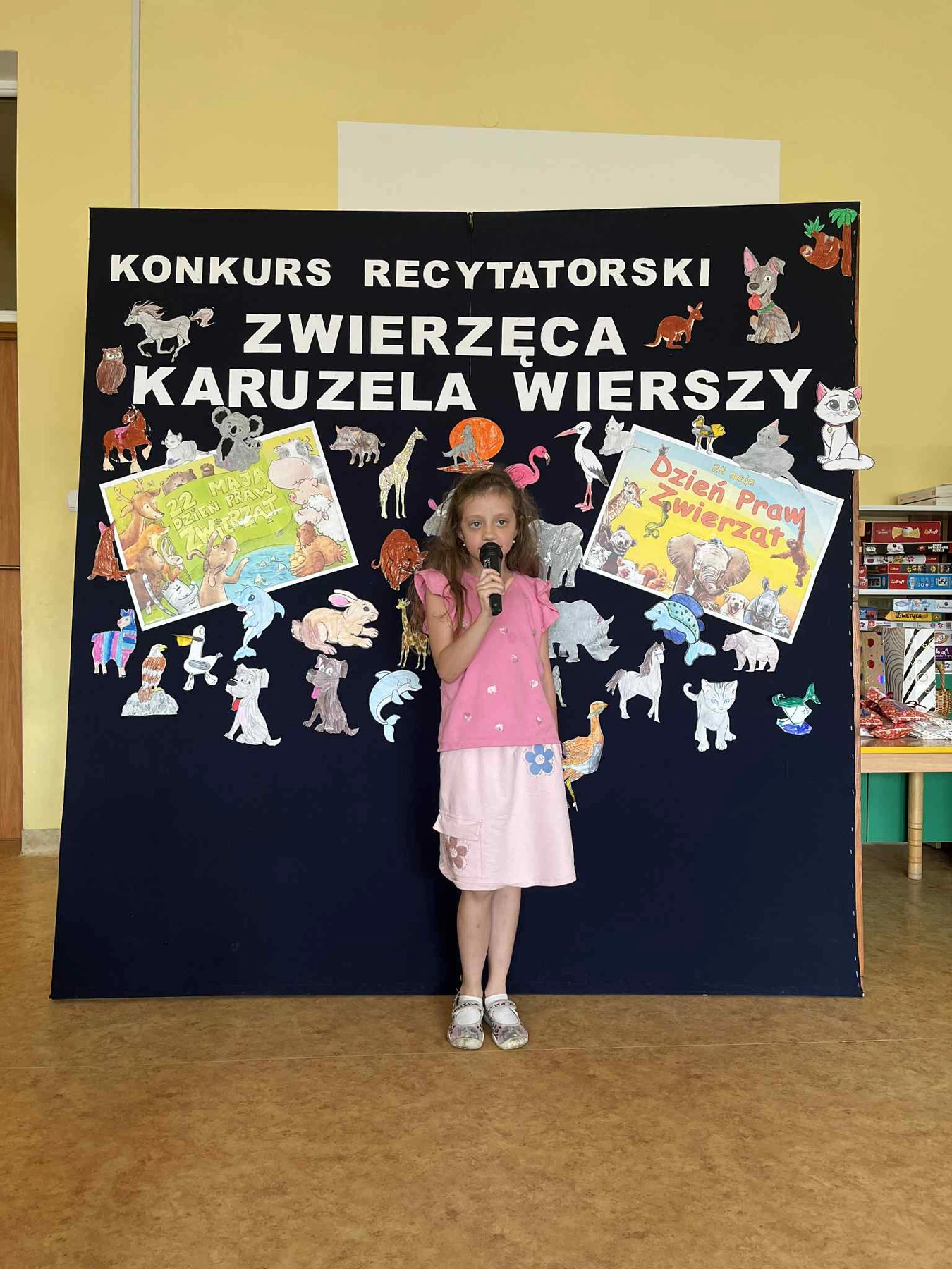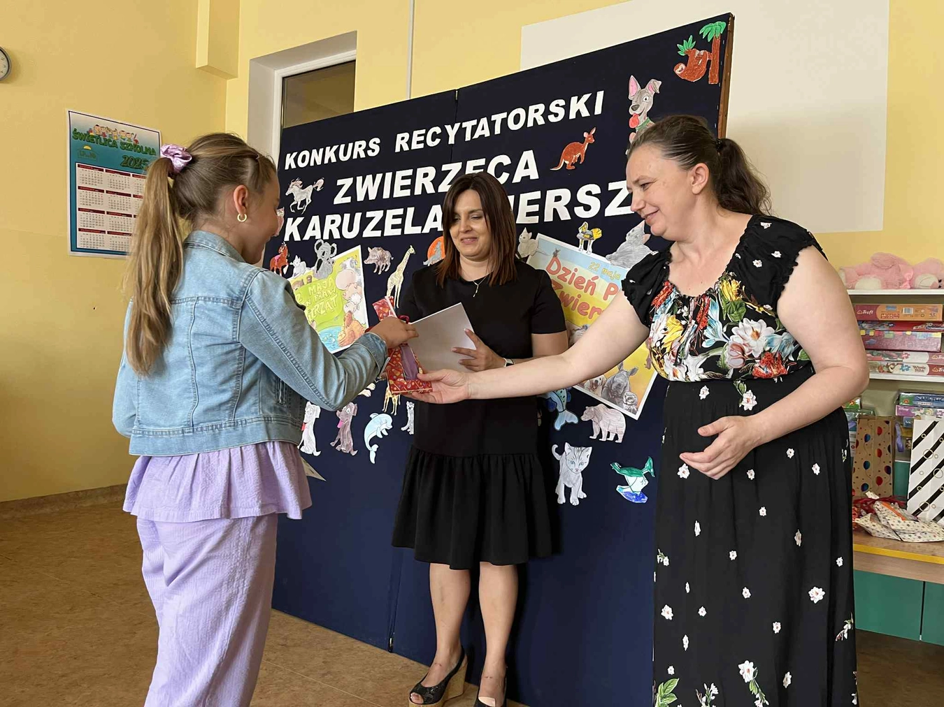 W dniu 05.06.2025r. odbył się świetlicowy konkurs recytatorski pt. ,,Zwierzęca karuzela wierszy”. Jury w składzie: Pani Dyrektor Magdalena Kusibab , Pani Aleksandra Gruszecka, Pani Anita Milas, po burzliwej naradzie wyłoniło zwycięzców: