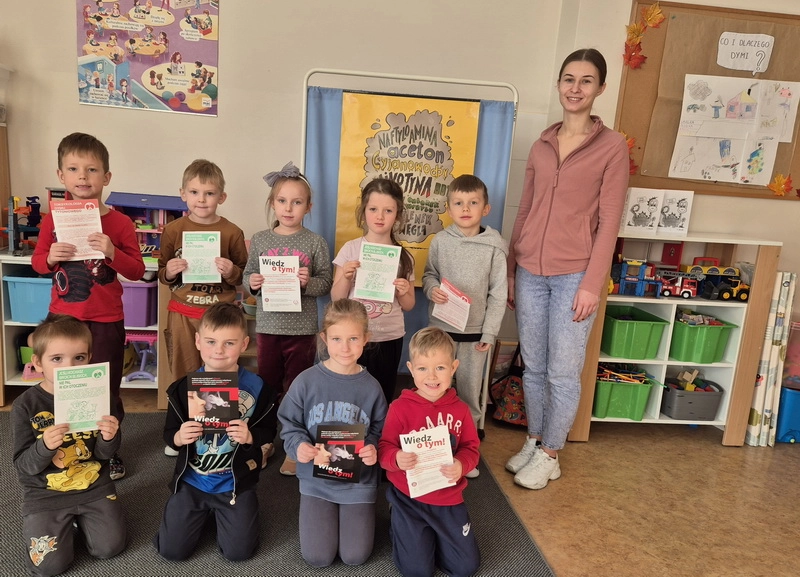 W listopadzie uczniowie klasy 0 zrealizowali ogólnopolski program edukacji antytytoniowej "Czyste powietrze wokół nas". W ramach zajęć dzieci dowiedziały się skąd biorą się dymy oraz jaki wpływ mają na nasze zdrowie. Na kolejnych spotkaniach poznały maskotkę programu Dinusia, zwolennika czystego powietrza i przeciwnikiem dymu papierosowego. Nauczyliśmy się jakie skutki dla zdrowia niesie kontakt z dymem papierosowym oraz co się dzieje, gdy ludzie palą papierosy?. Podsumowaniem projektu było wykonanie wspólnego plakatu oraz spotkanie ze szkolną pielęgniarką. Takie inicjatywy uczą dzieci troski o zdrowie i kształtują pozytywne postawy już od najmłodszych lat.