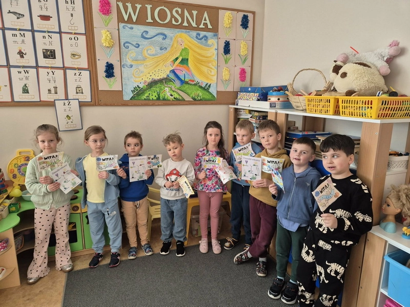 W dniu 20 marca dzieci przyszły do szkoły ubrane w wiosenne kolory, radośnie powitały pierwszy dzień wiosny.